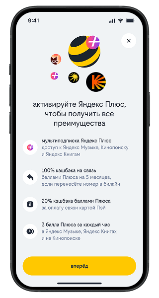 ты будешь получать преимущества на услуги и сервисы билайна, но не Яндекса, включая кешбэк баллами Плюса